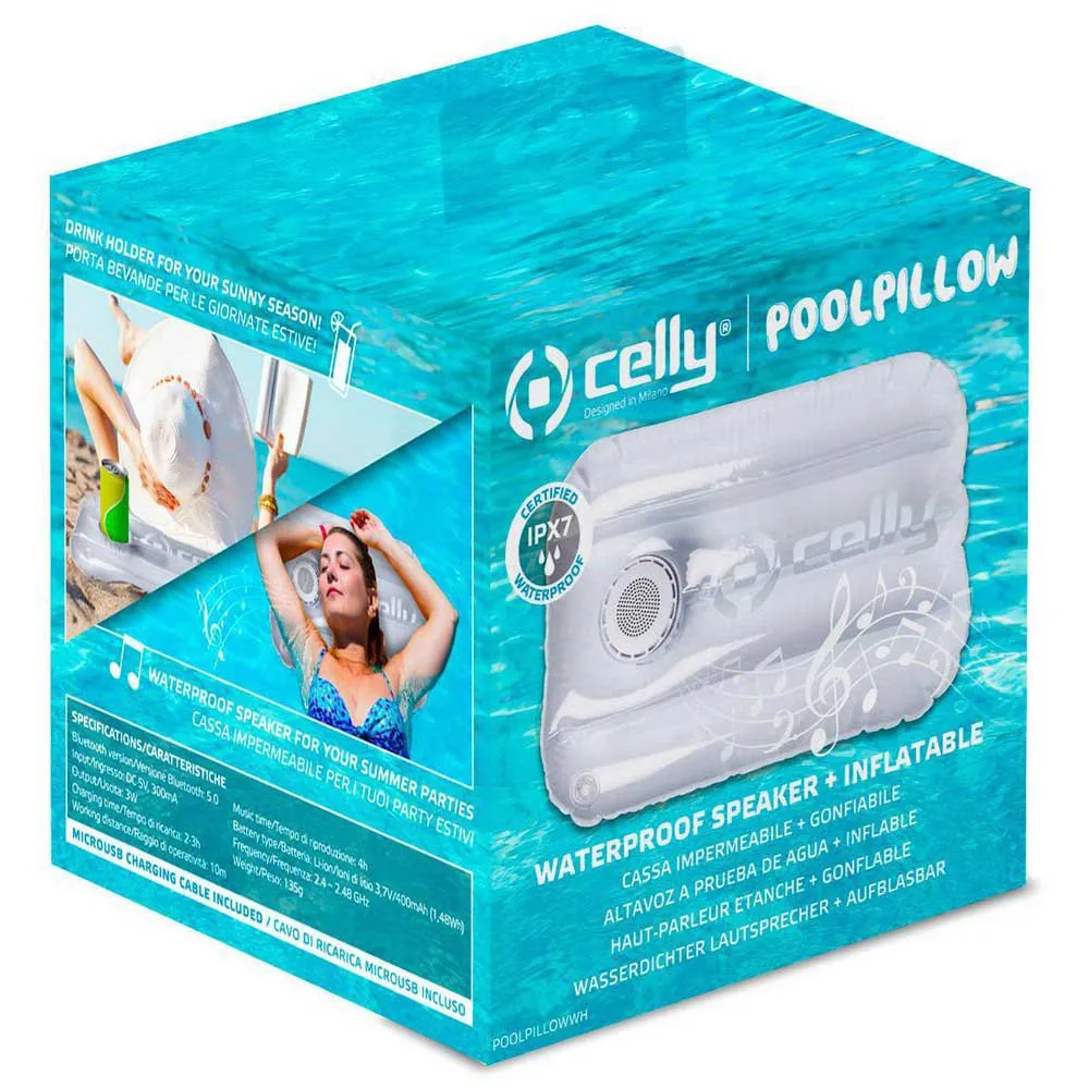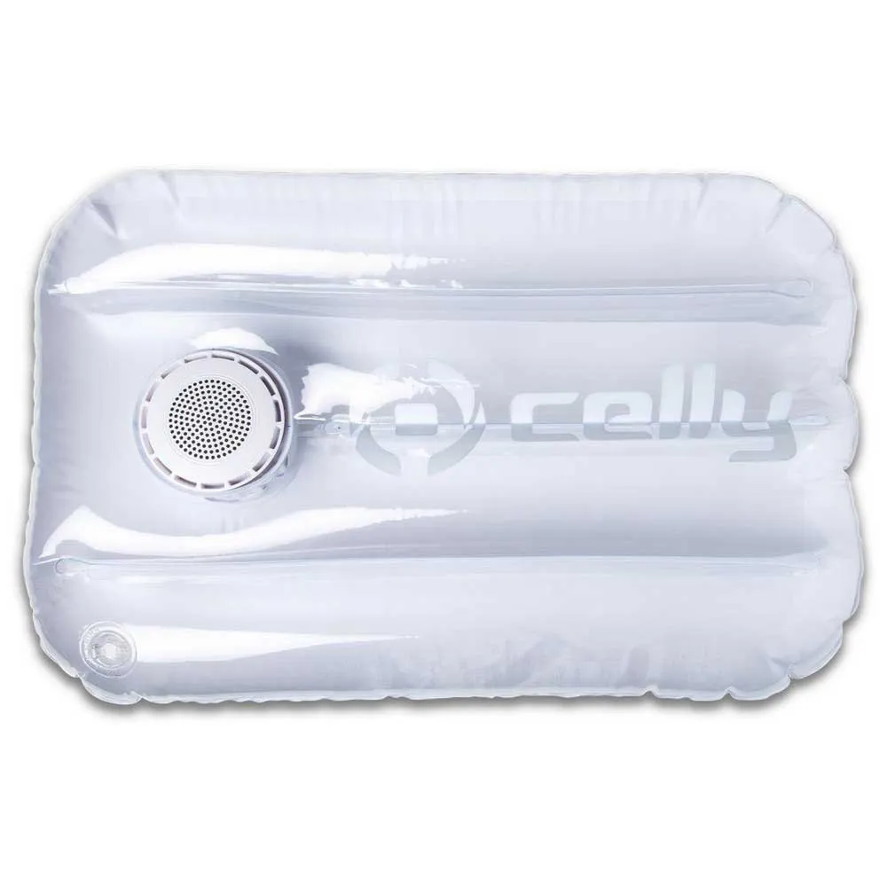 Pool Pillow es la nueva almohada inflable para tus viajes a la playa. inserta el altavoz inalámbrico resistente al agua y relájate con tu lista de reproducción favorita de fondo.