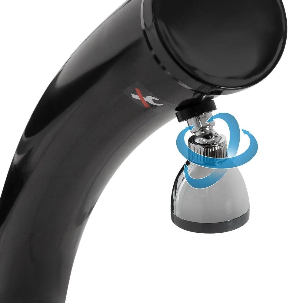 Con el monomando puede mezclar el agua caliente almacenada con agua más fría de la manguera hasta alcanzar la temperatura deseada. El moderno diseño hace que la ducha solar tenga un aspecto elegante y, al mismo tiempo, sea resistente a la corrosión, estable y duradera.
