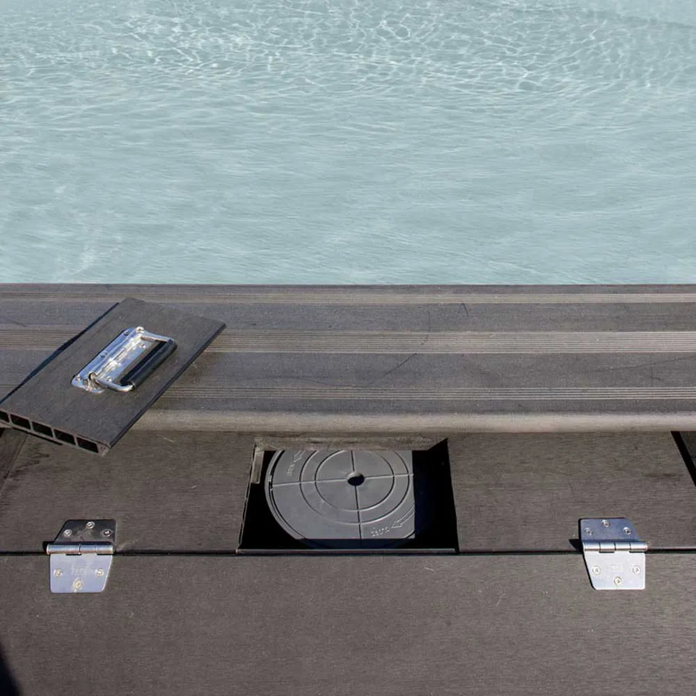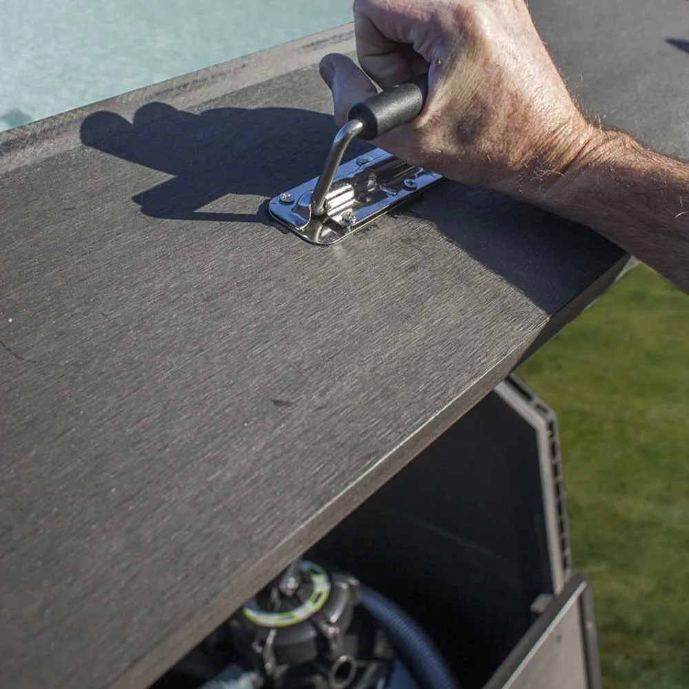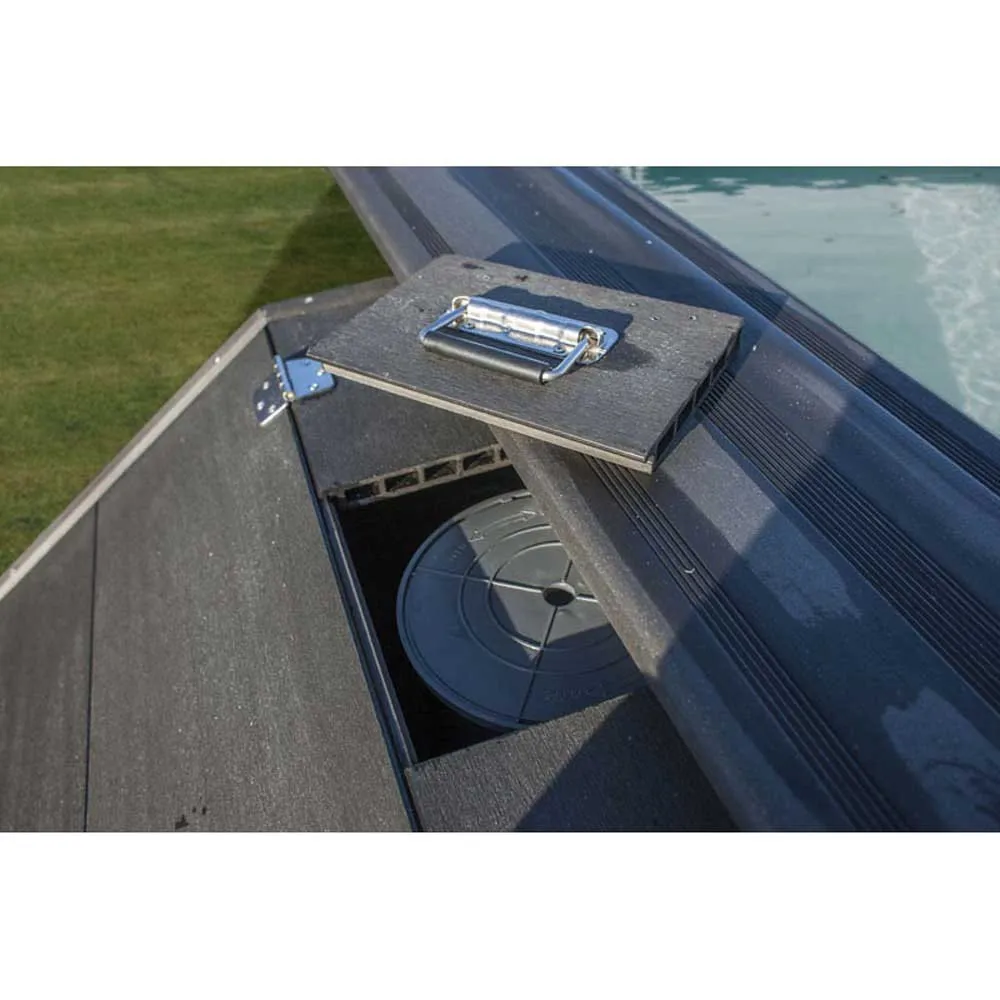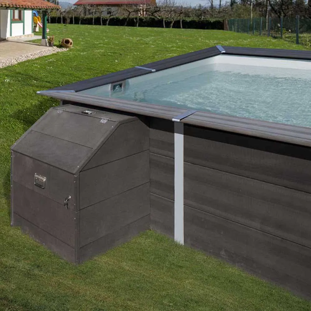 Esta gama de cabinas de composite está disponible en una sola altura, que se adapta perfectamente a la altura de la gama de piscinas de composite Avantgarde de GRE. Estas cabinas están diseñadas para evitar que los diferentes accesorios de la piscina (filtros, material de limpieza ligero, limpiafondos, manguera …) se sitúen en el exterior, con los riesgos que esto puede conllevar. Adicionalmente es una forma estética de esconder estos diferentes complementos que suelen quedarse en el jardín. Pueden fijarse junto a la piscina o separarse de ella, ya que tienen todas las paredes para proteger los accesorios.