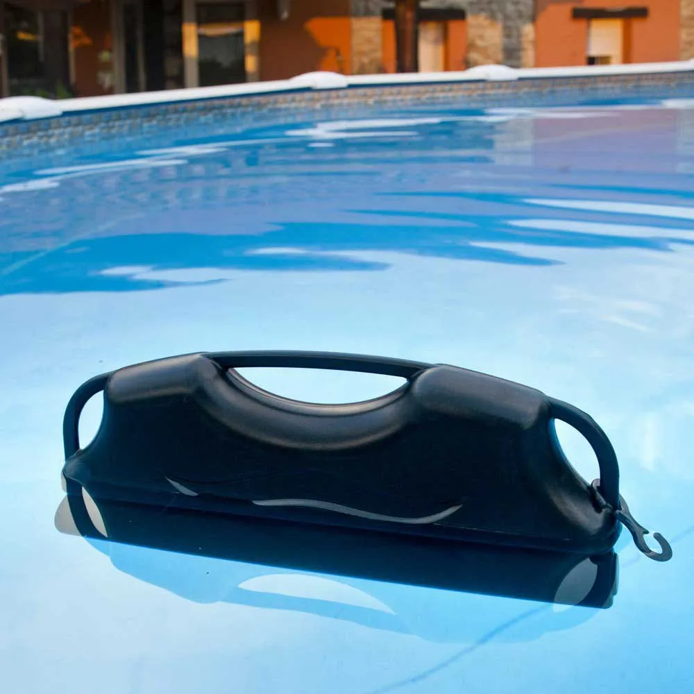 Incluye dos agujeros superiores que permiten atarlo para mantenerlo fijo a la piscina