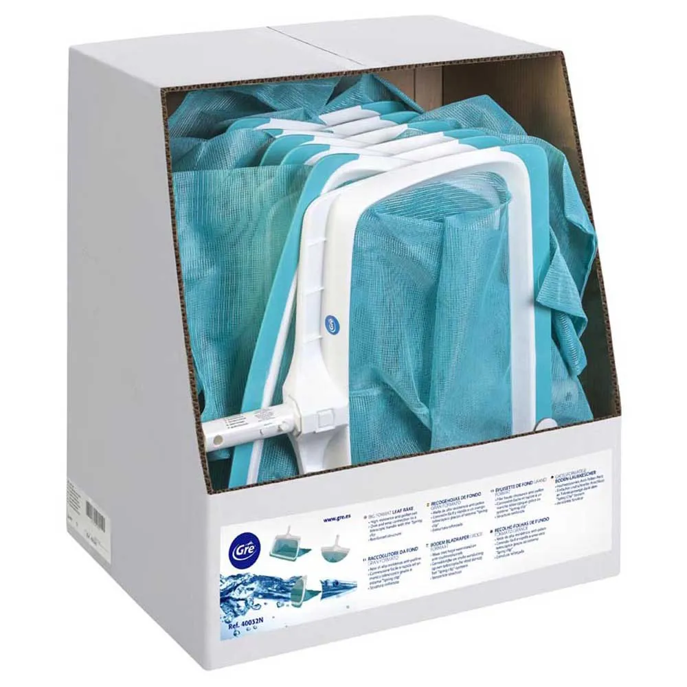 Las redes y rastrillos de la hoja del fondo permiten recoger los desechos que han quedado en el fondo de la piscina, como hojas, insectos o partículas más pequeñas. Las hojas inferiores de la gama GRE están diseñadas con un sistema de fijación para conectar con un asa telescópica, que permite limpiar la superficie de una piscina completa sin tener que moverse. GRE ofrece una amplia gama de fondo de redes de hojas y rastrillos de diferentes materiales y colores que se adapta a todas las necesidades de limpieza de piscinas.