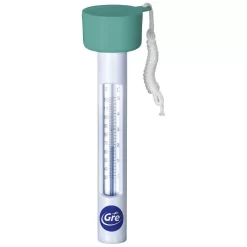GRE ofrece una amplia gama de termómetros para medir la temperatura del agua de la piscina: termómetros integrados en el dosificador flotante, que le permite tener una doble función, termómetros que se pueden fijar a la escalera para evitar flotar en el medio de la piscina. y molesta a las personas que se bañan. Nuestra gama de termómetros está disponible en diferentes diseños: convencionales y más divertidos con figuras de animales.