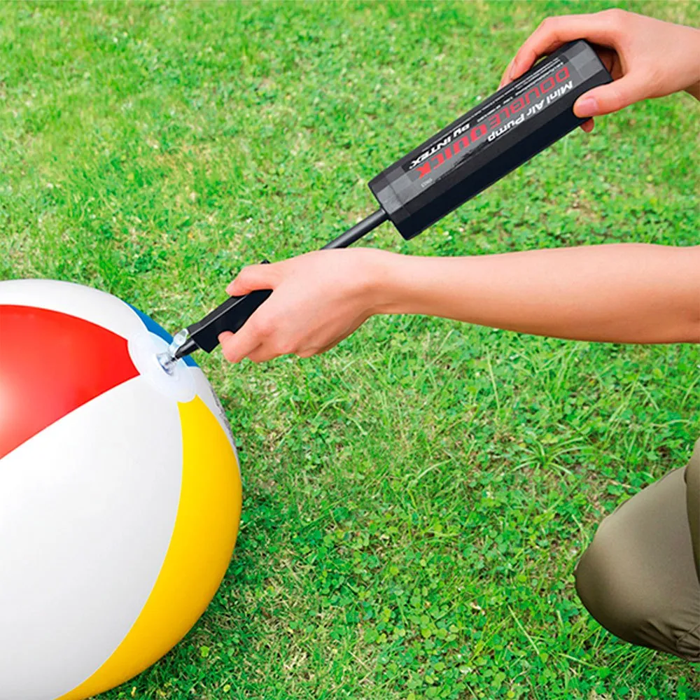 El mini inflador de mano funciona de manera sencilla:movimientos hacia atrás y hacia delante.