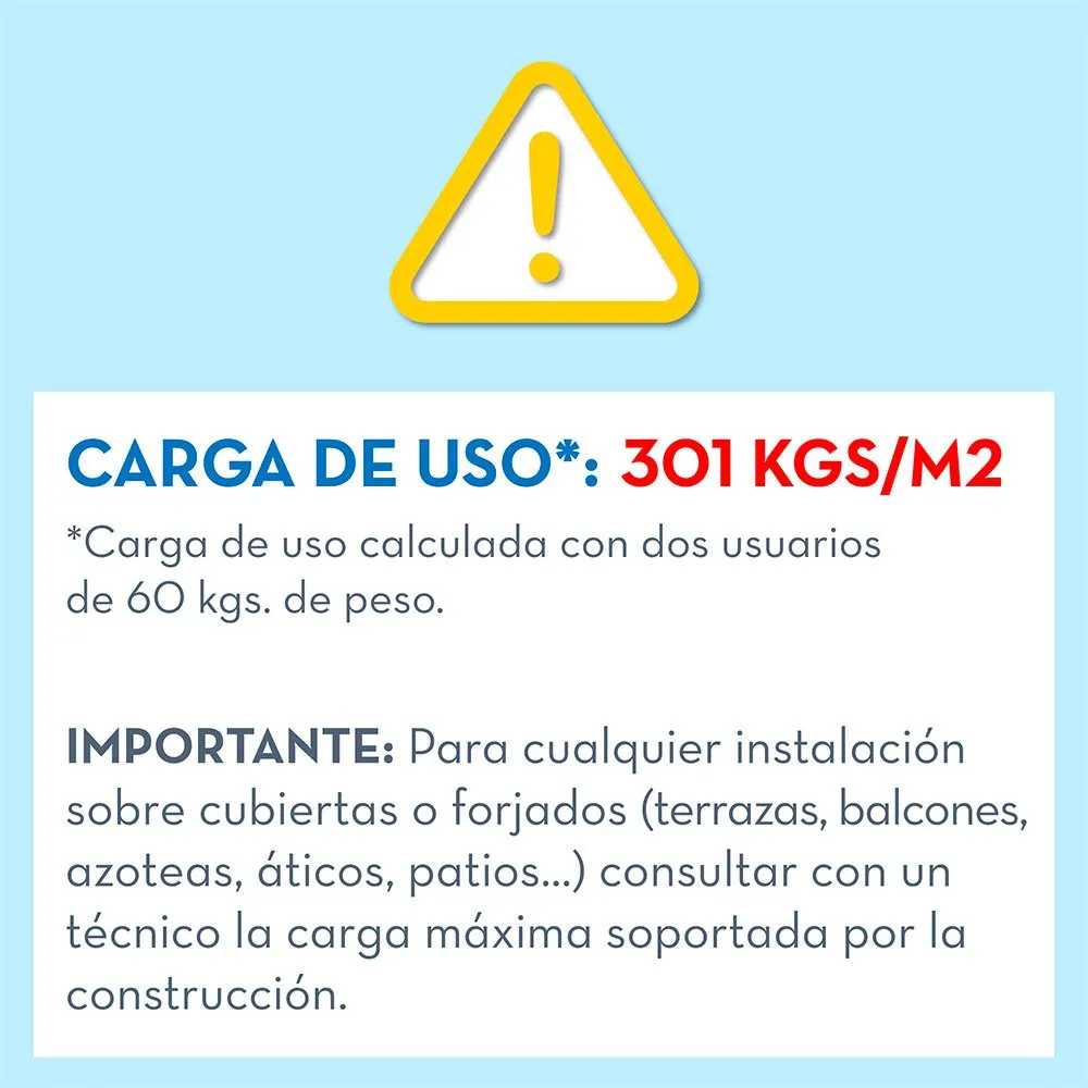 Piscina exterior montable que cuenta con una capacidad de 886 litros de agua.