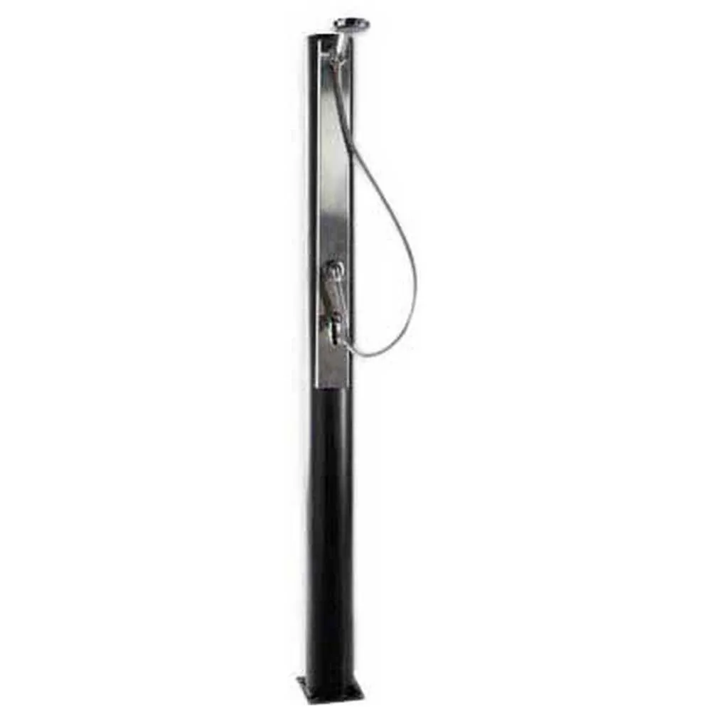 La ducha de jardín con calentamiento solar de agua está diseñada para ducharse con agua caliente sin necesidad de una fuente de agua caliente externa. El agua se calienta por radiación solar en un tanque de almacenamiento (cuerpo de ducha) con una capacidad de 35 litros. La entrada de agua fría a la ducha de jardín es posible mediante un acoplamiento de manguera de liberación rápida (suministrado de serie) o mediante una válvula de bola (no suministrada) o con una manguera de agua. combinación de ambos elementos. La ducha de jardín con calefacción solar es capaz de ofrecer agua caliente del servicio hasta doscientos días al año. La ducha solar para jardín es un complemento adecuado para todo tipo de piscinas familiares, una fuente conveniente, económica y conveniente de agua caliente sanitaria para casas de vacaciones, colonias de jardinería, pequeñas instalaciones deportivas y en los jardines de casas unifamiliares.